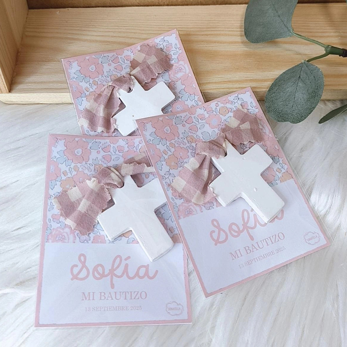 Ambientador de cerámica perfumada en forma de cruz, un precioso detalle para regalar en bautizos, comuniones o en cualquier evento en el que queremos sorprender a nuestros invitados.
