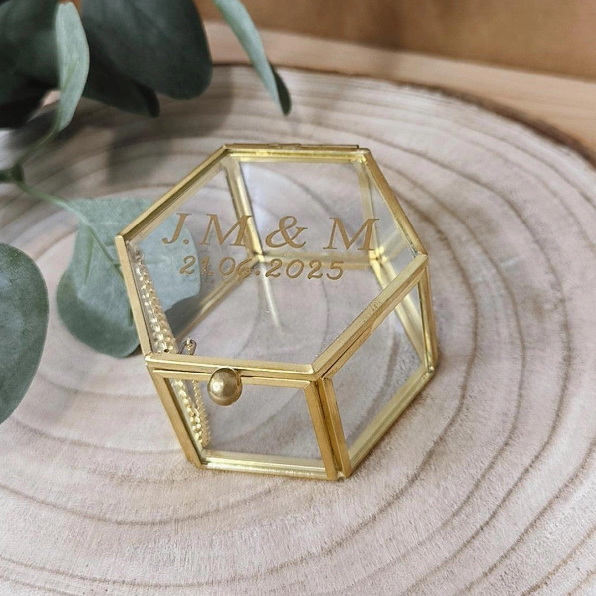 Porta arras en cristal son filos en dorados. Es perfecta para poder llevar las arras en uno de los días más felices de nuestra vida o para regalar.