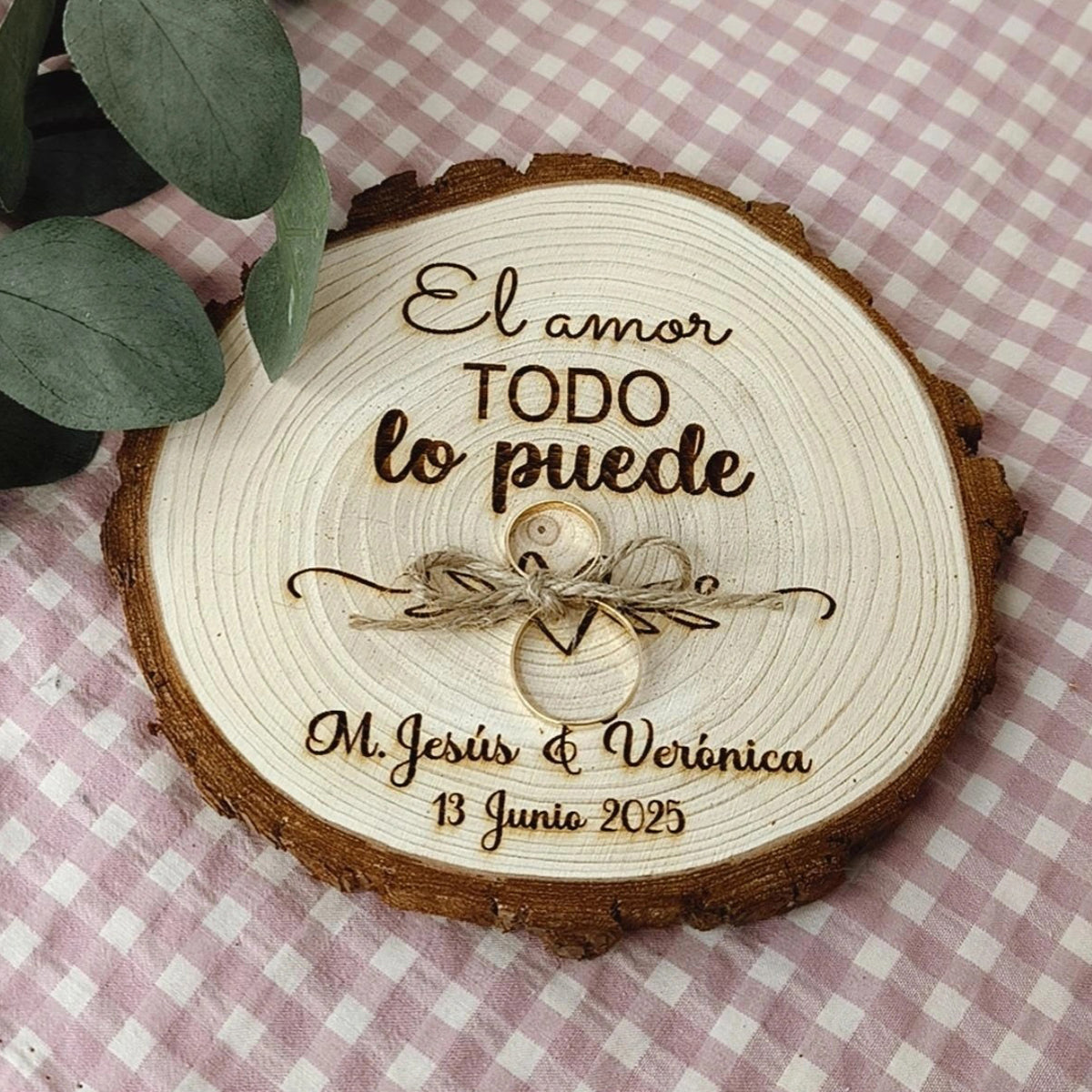 Personalízalo con vuestros nombres, la fecha de la boda y una bonita frase, creando así un recuerdo para toda la vida que acompañará vuestras alianzas en ese instante tan significativo.